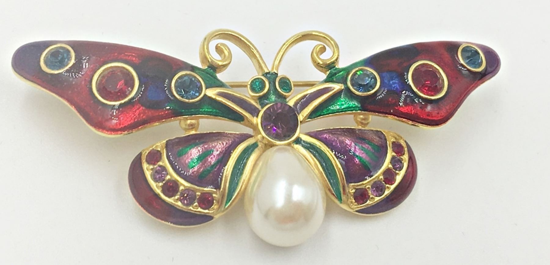 JEWELED RAINBOW BUTTERFLY BROOCH. FROM THE BUTTERFLY COLLECTION. LIKE NEW APPEARENCE. PRE-OWNED. SEE PHOTOS! ESTIMATE: $75-$100