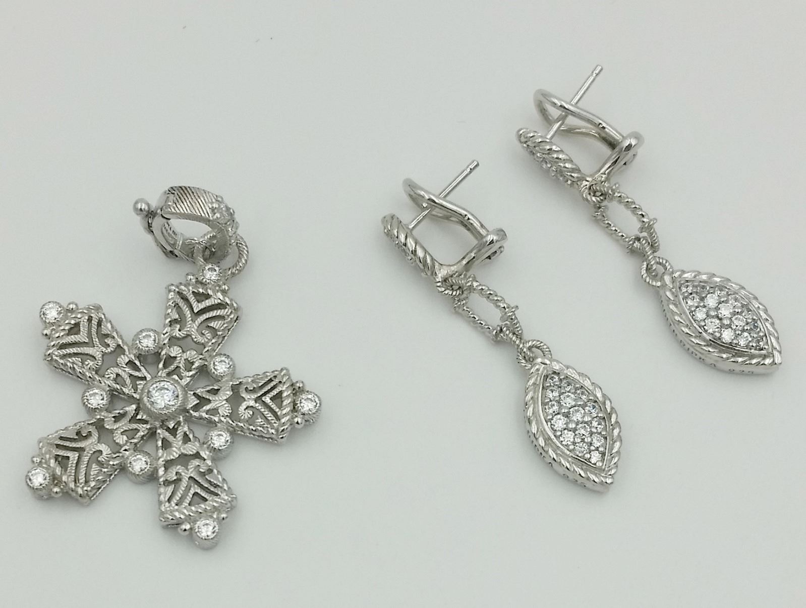 JUDITH RIPKA CROSS PENDANT AND PIERCED EARRINGS SET. ESTIMATE:$150-$200