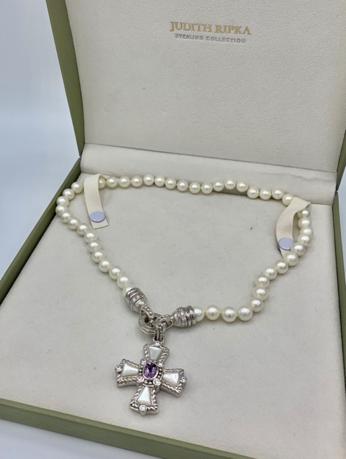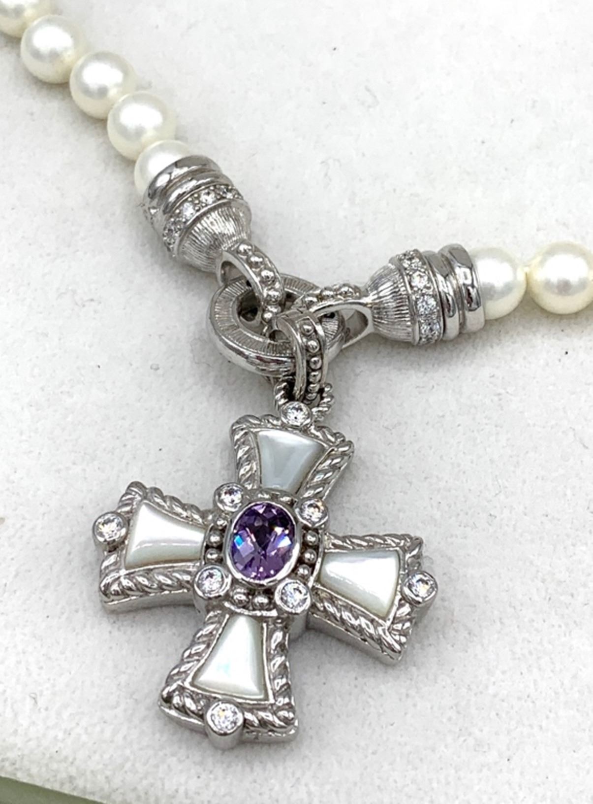 JUDITH RIPKA STERLING SILVER CROSS WITH