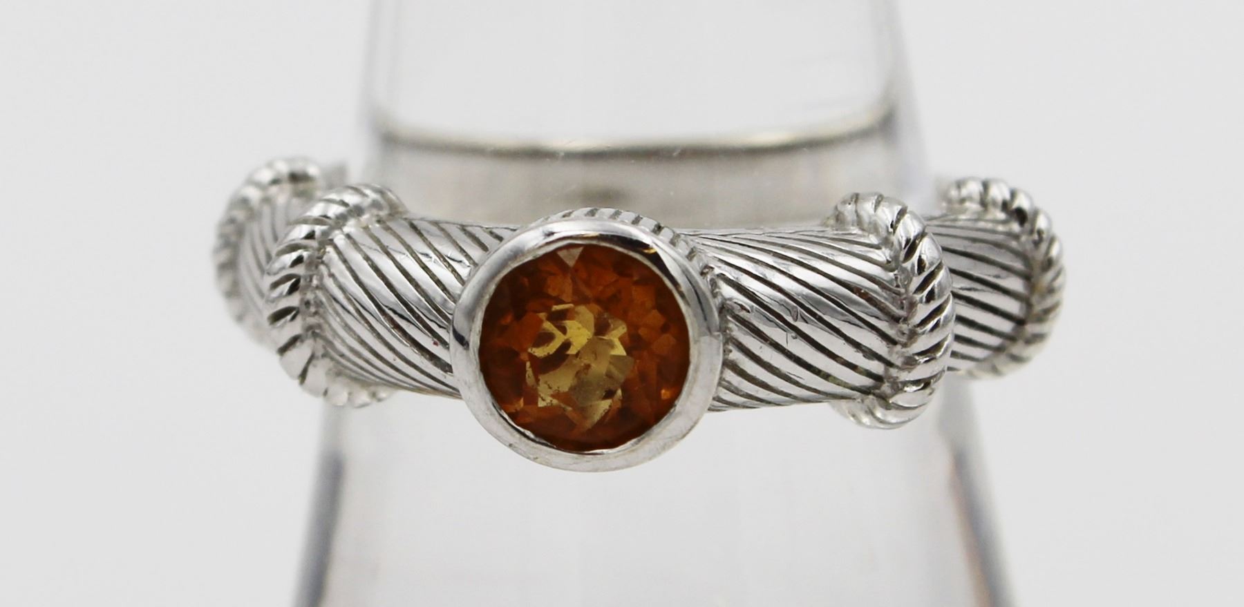 JUDITH RIPKA STERLING SILVER RING WITH CITRINE STONE. SIZE 9.5 ESTIMATE. $125-$175