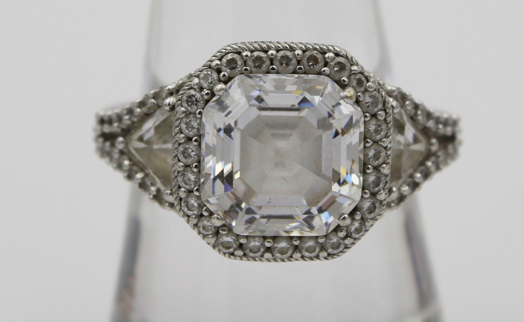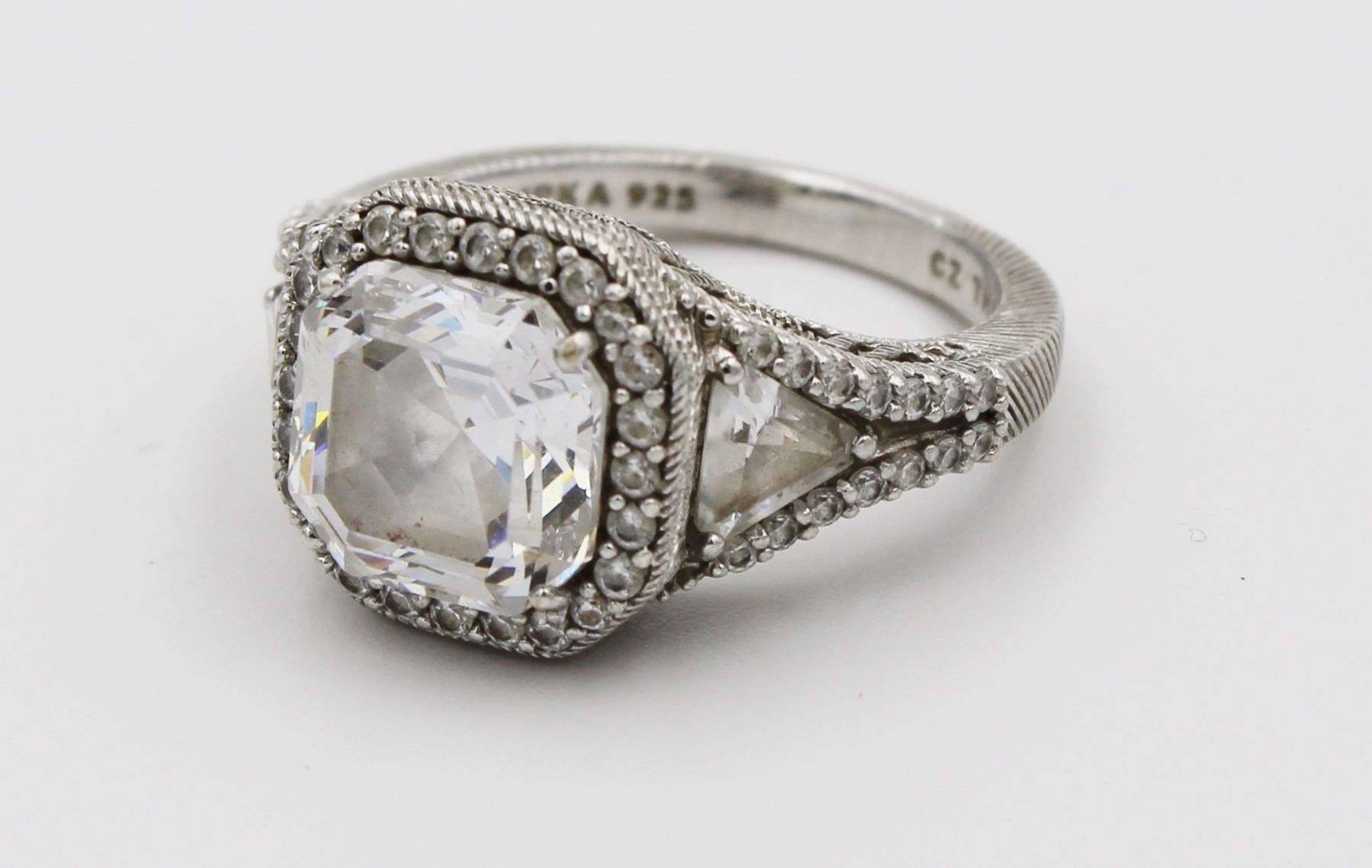 JUDITH RIPKA STERLING SILVER RING WITH CZ'S. SIZE 9.5. PRE-OWNED. ESTIMATE:$100-$150