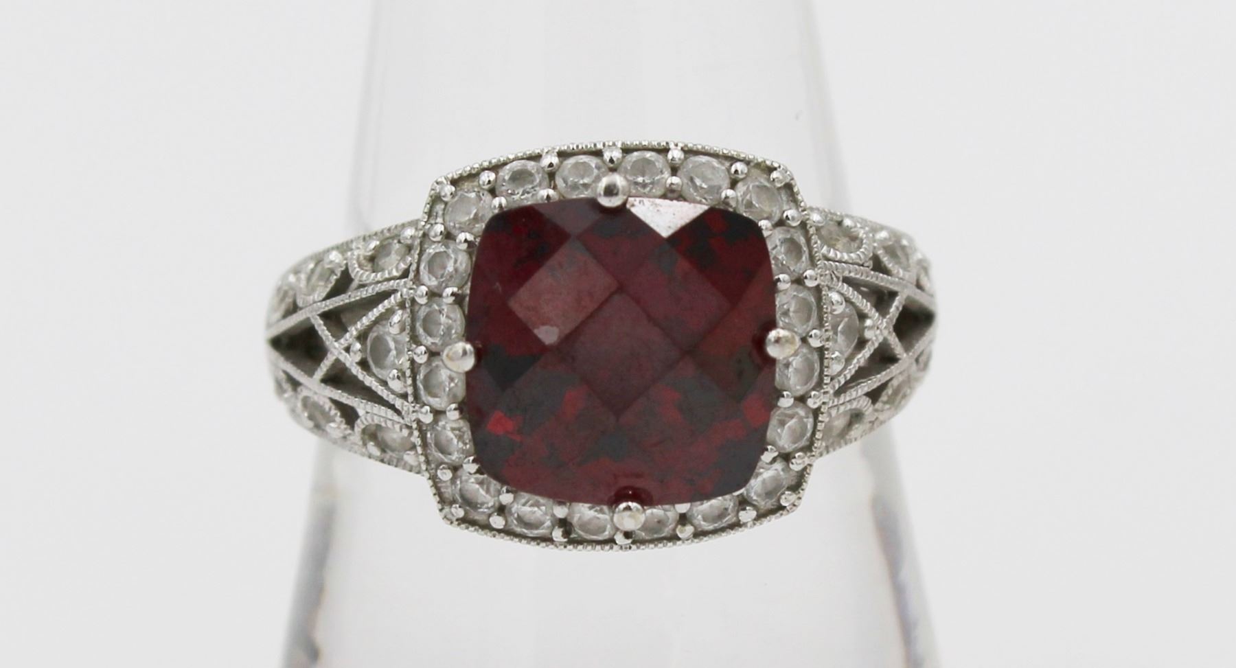 JUDITH RIPKA STERLING SILVER RING WITH CZ'S. SIZE 9.5 . PRE-OWNED. ESTIMATE:$100-$150