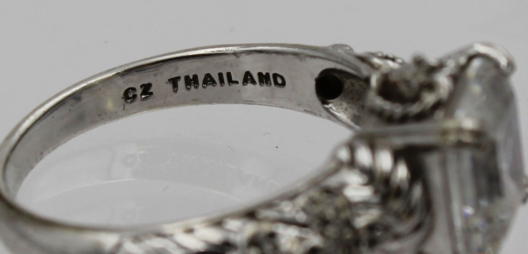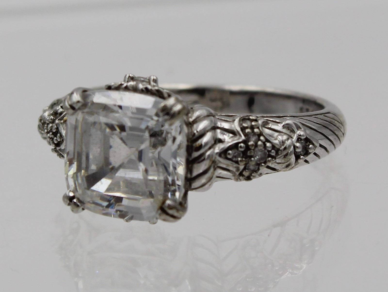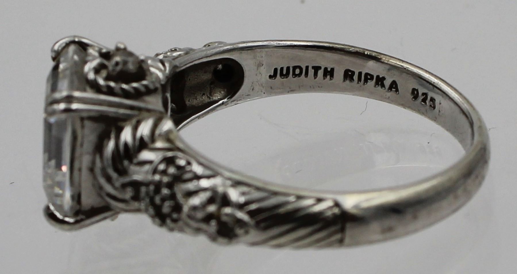 JUDITH RIPKA STERLING SILVER RING WITH CZ'S. PRE-WNED. SIZE 10. ESTIMATE:$100-$150
