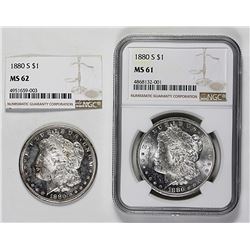 1888-O MS62 (NGC CERT) AND 1889-O AU. ESTIMATE: $80-$120