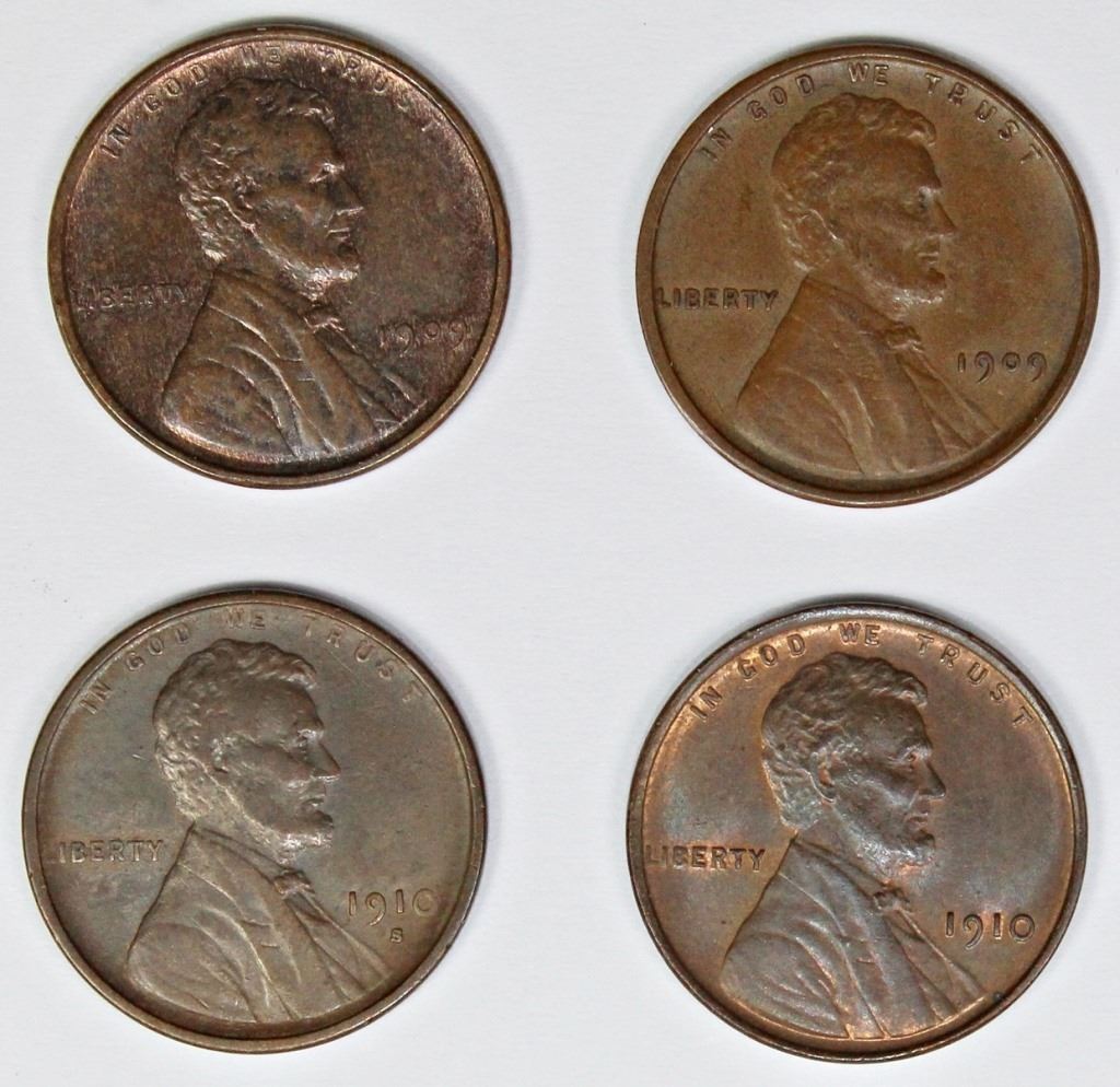 1909 VDB CH BU R+B, 1909 AU, 1910 CH BU R+B, AND 1910-S AU. ESTIMATE: $120-$150
