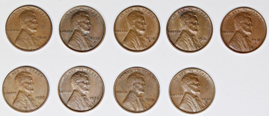 1930 XF, 1930-D AU, 1930-S AU, 1931 AU/UNC, 1931-D AU, 1932, 1932-D AU, 1933 XF, AND 1933-S XF. ESTIMATE: $90-$115