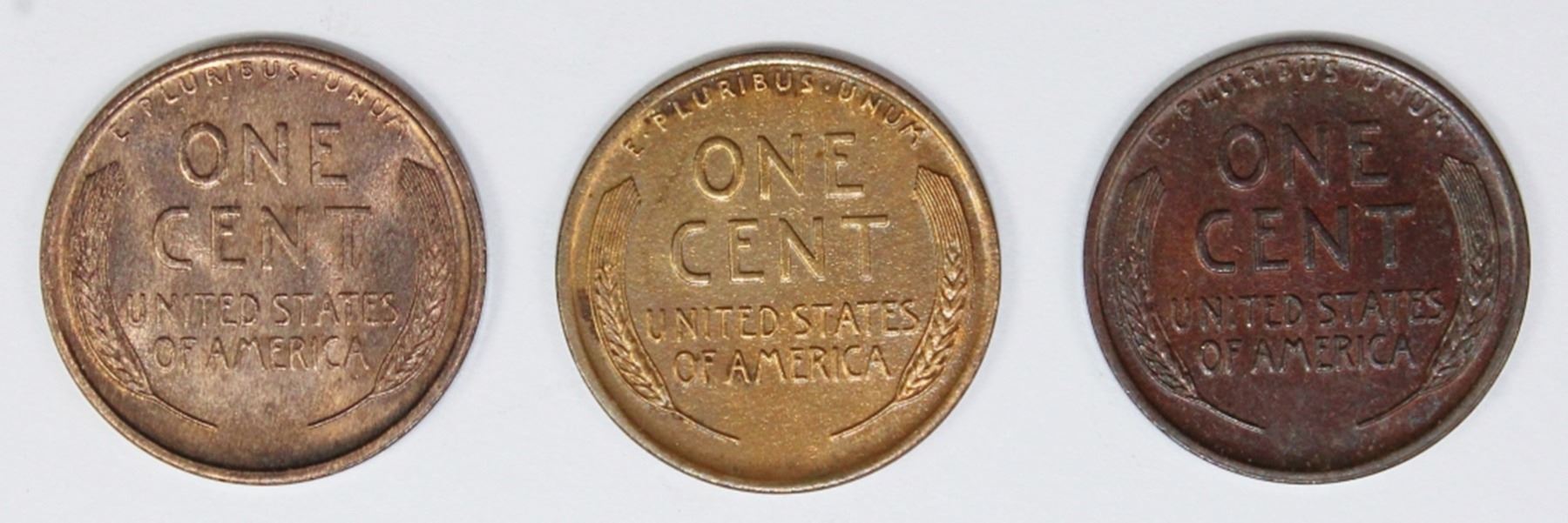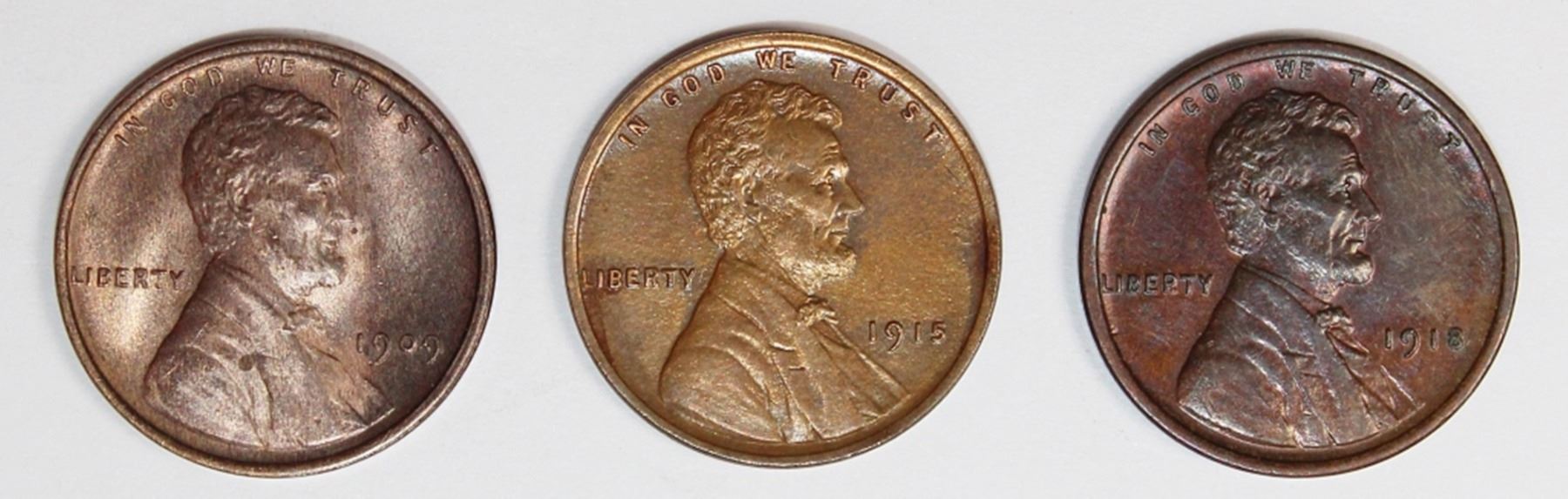 1909 GEM BU RED BROWN, 1918 UNC. 1915 AU. ESTIMATE: $100-$150