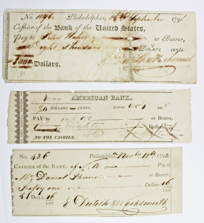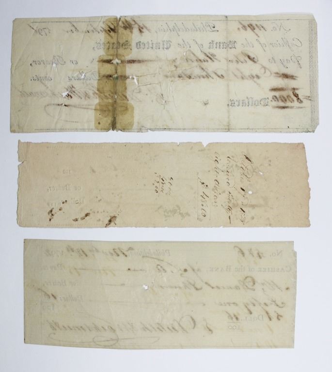 AMERICAN BANK, BANK OF AMERICA AND BANK OF U.S. SCARCE. 1792-1828 WRITTEN. ESTIMATE: $150-$200