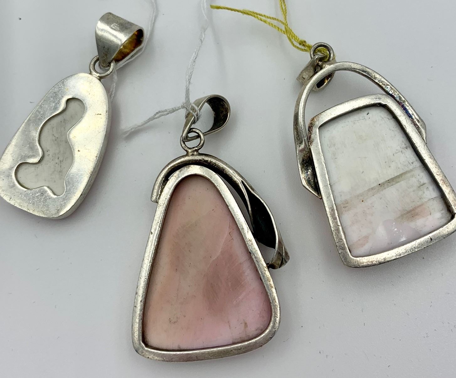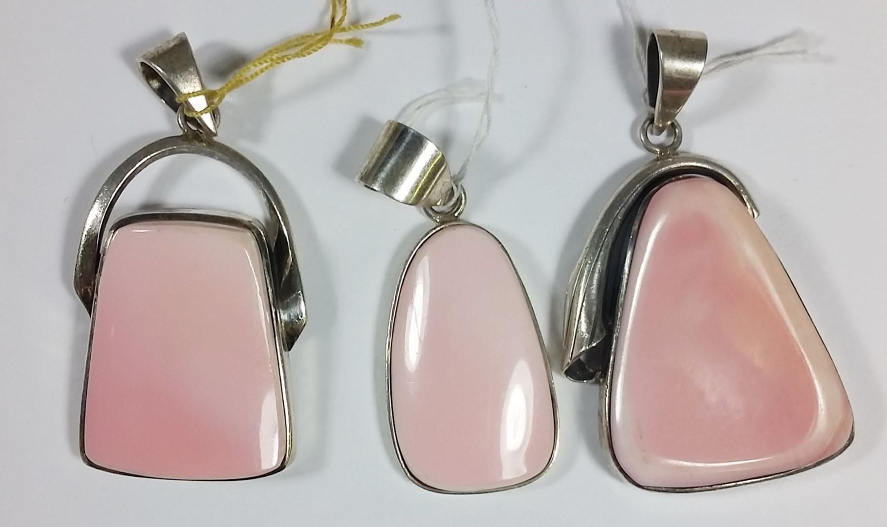 LOT OF 3 PINK ENAMEL STERLING SILVER PENDANTS. ALL 3 ARE LARGE AND BOLD! 39.2 GRAMS. PRE-OWNED. ESTIMATE: $50-$75