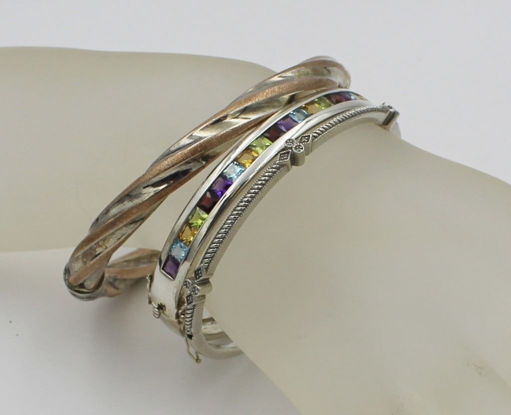 59.3 GRAMS. ONE IS A MULTI-TONED AND ONE HAS MULITI-COLORED GEMSTONES. ESTIMATE $150-$200