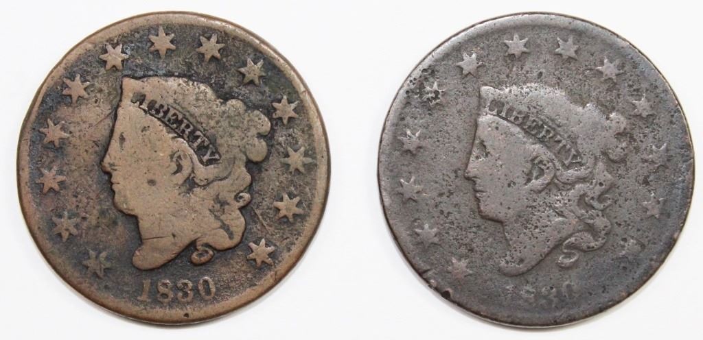 1830 G-VG LARGE LETTERS AND 1830 MEDIUM LETTERS VG. ESTIMATE: $85-$125