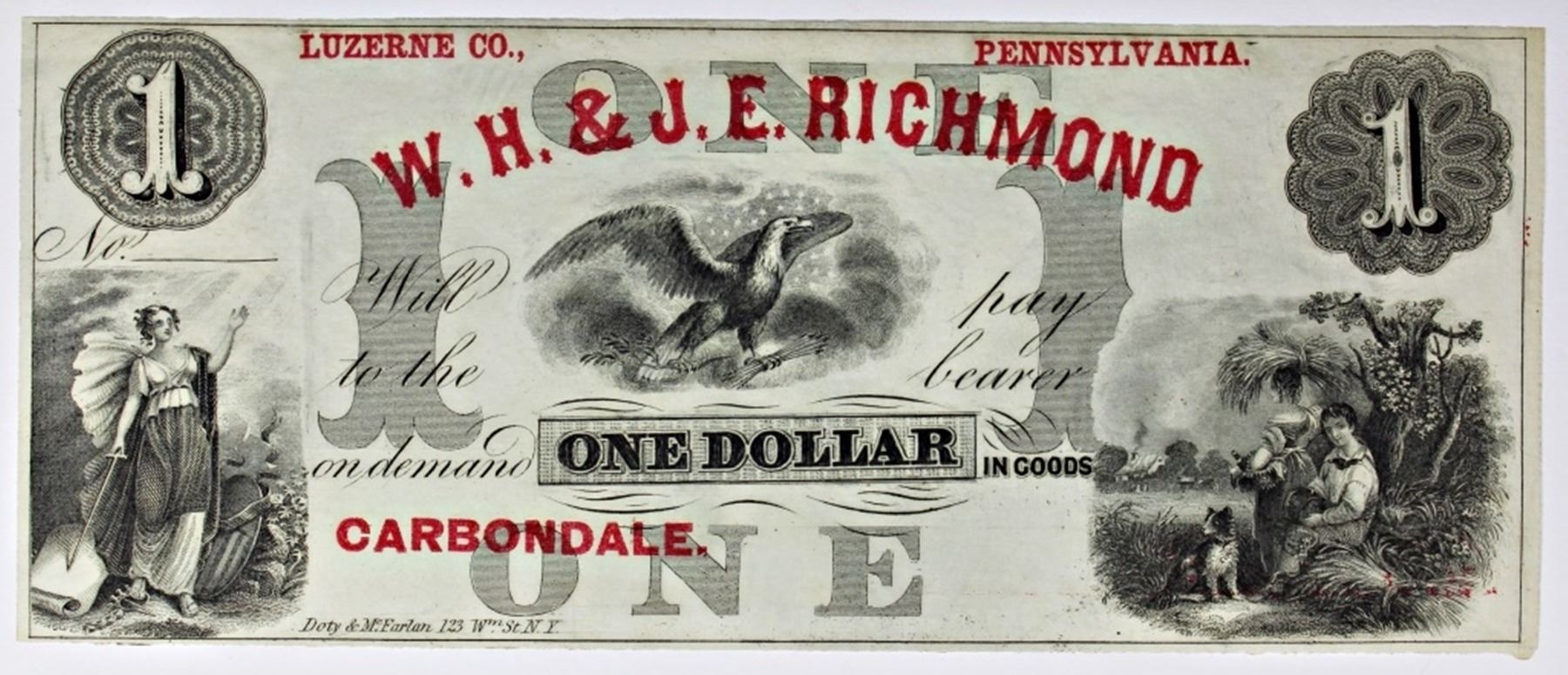 WH&JE RICHMOND $1 CARBONDALE OVERPRINT. ESTIMATE: $150-$200