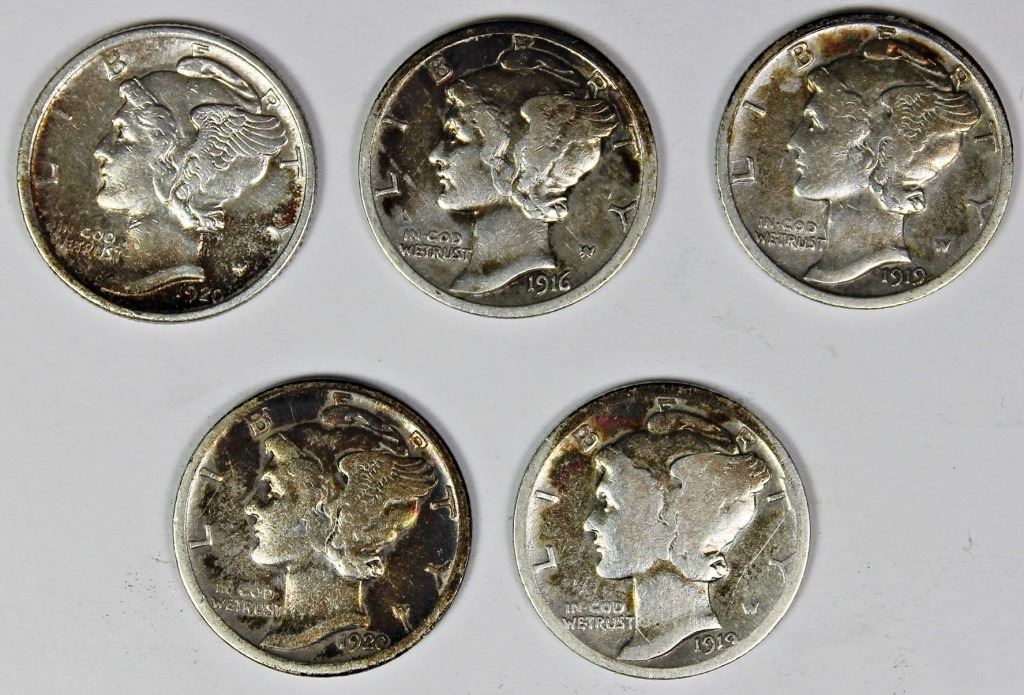 1920-S AU, 1916-S VF, 1919-S G, 1920-D FINE, AND 1919-D VF. ESTIMATE: $80-$105