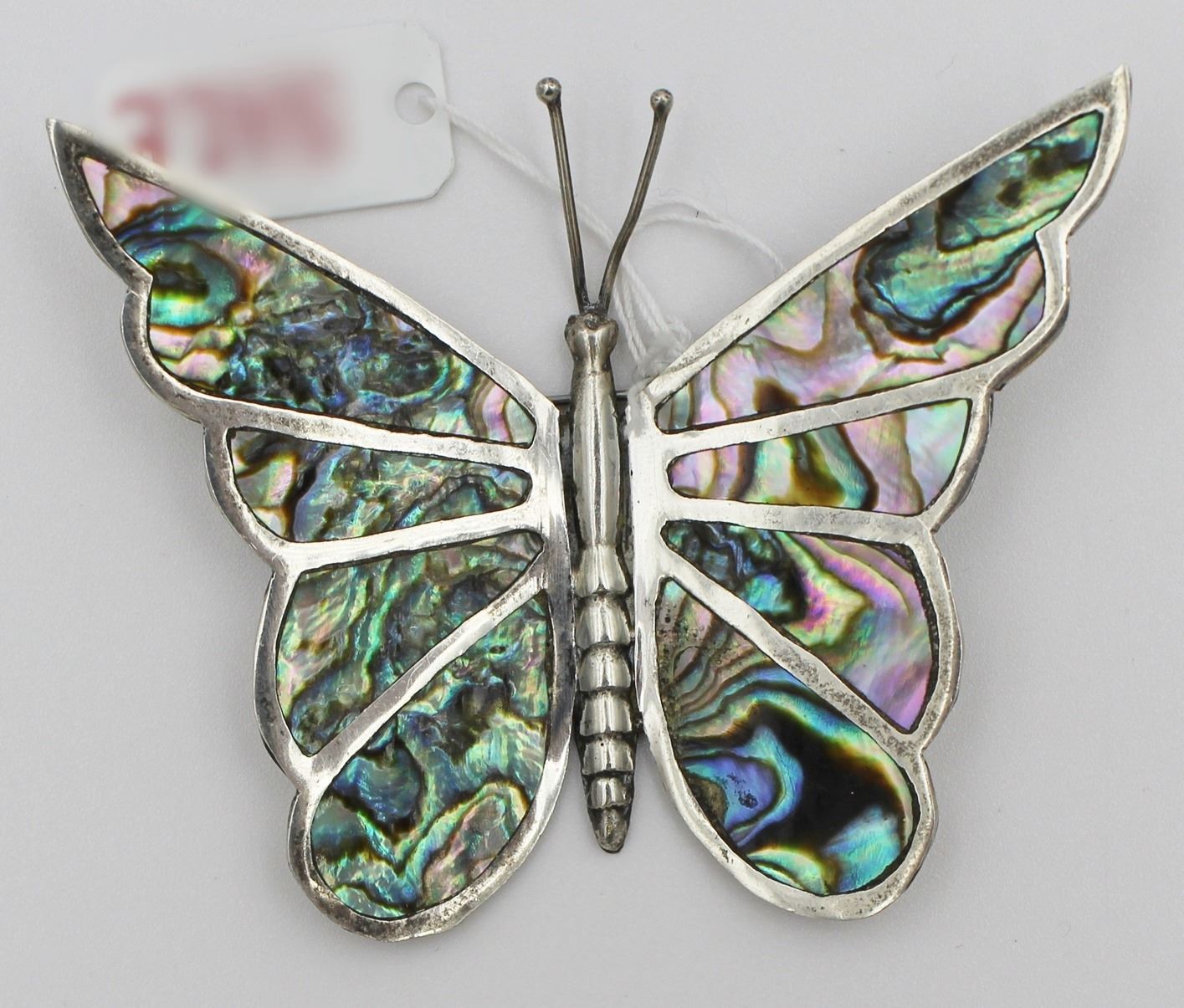 MEXICO SILVER TAXCO 8-PANEL ABALONE BUTTERFLY PIN. ESTIMATE:$150-$300