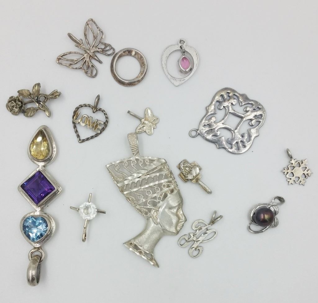 14 DIFFERENT STYLES AND SIZES, PRE-OWNED, SEE PHOTOS, COUPLE BUTTERFLIES, HEARTS, SNOWFLAKE, SEE PHOTOS! 40 GRAMS. ESTIMATE: $50-$75