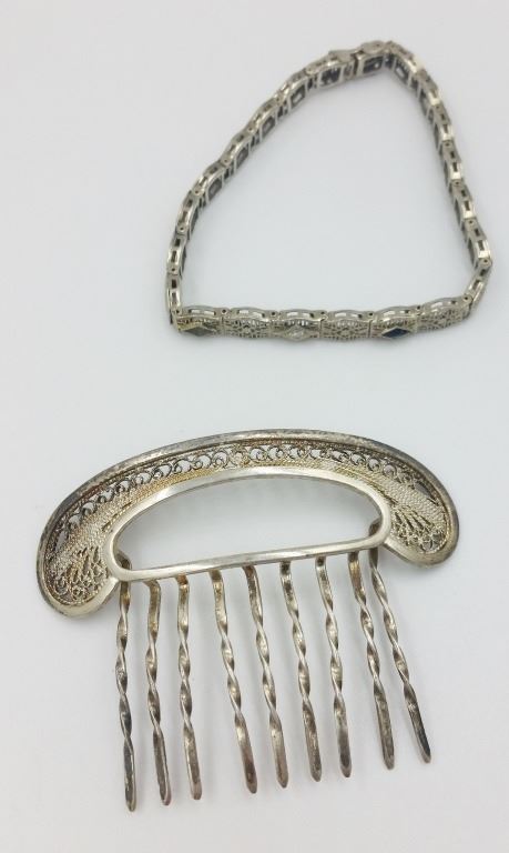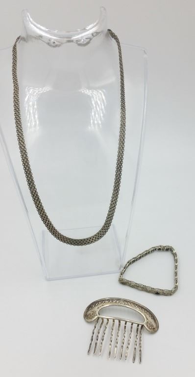 HAIR COMB, BRACELET, NECKLACE, PRE-OWNED, SEE PHOTOS! TOTAL 28 GRAMS. ESITMATE: $50-$75