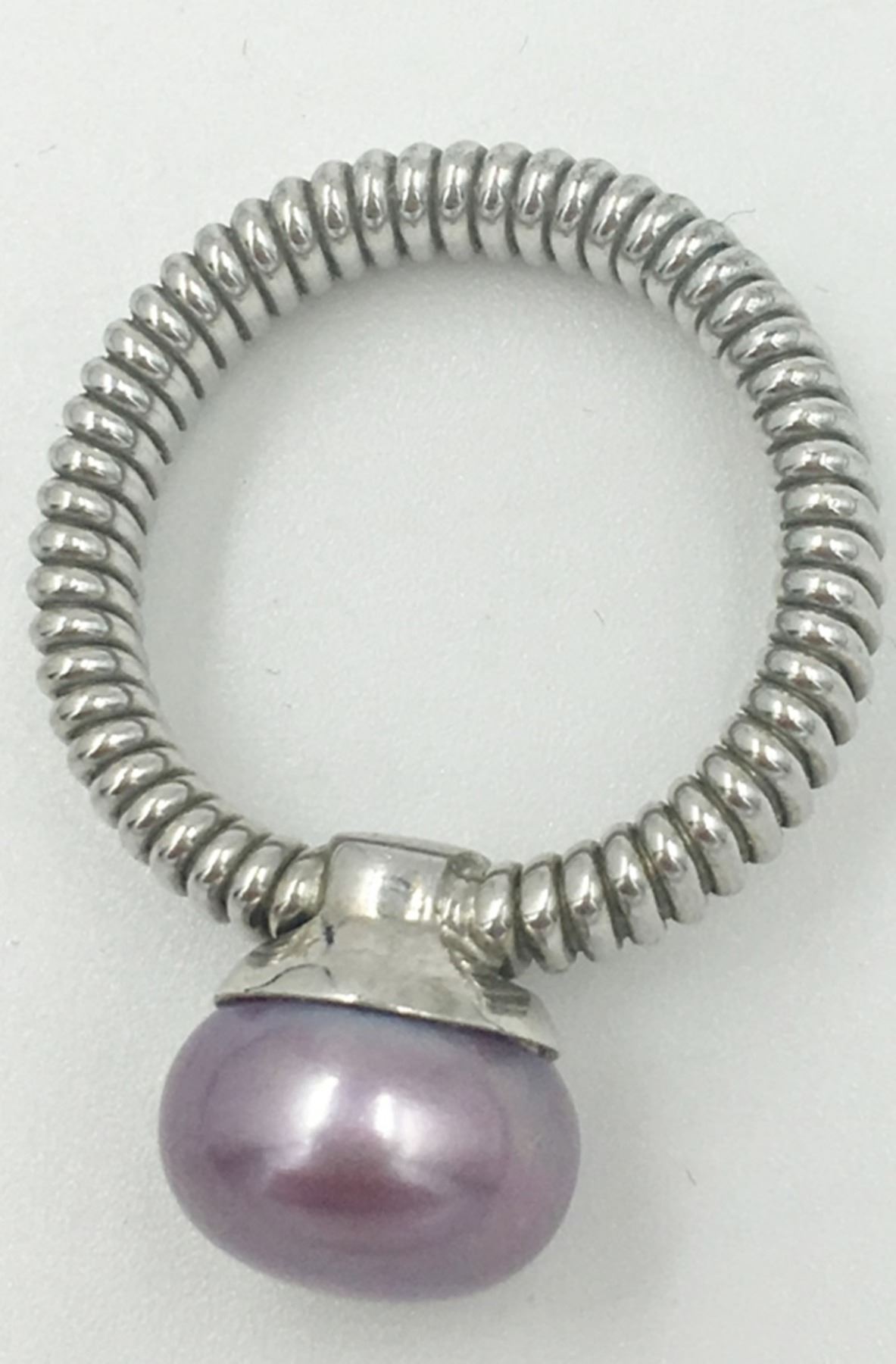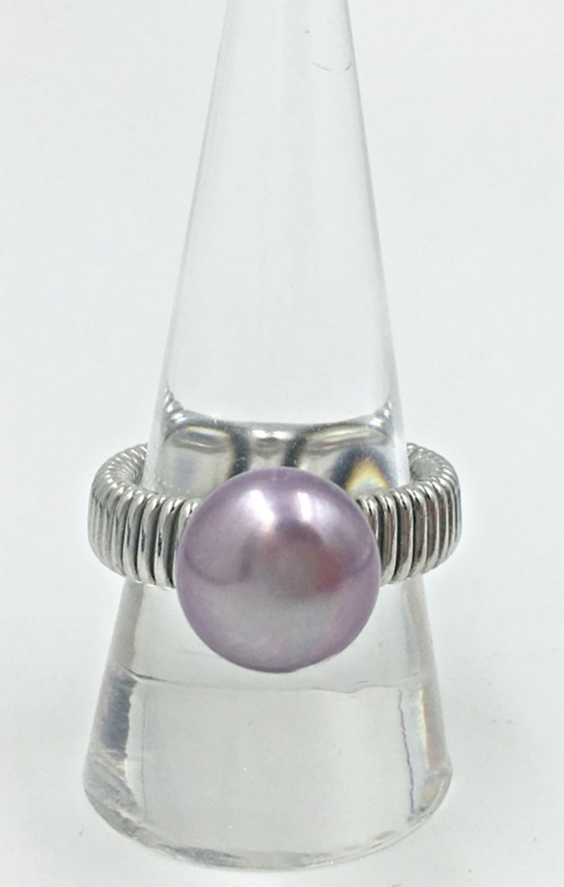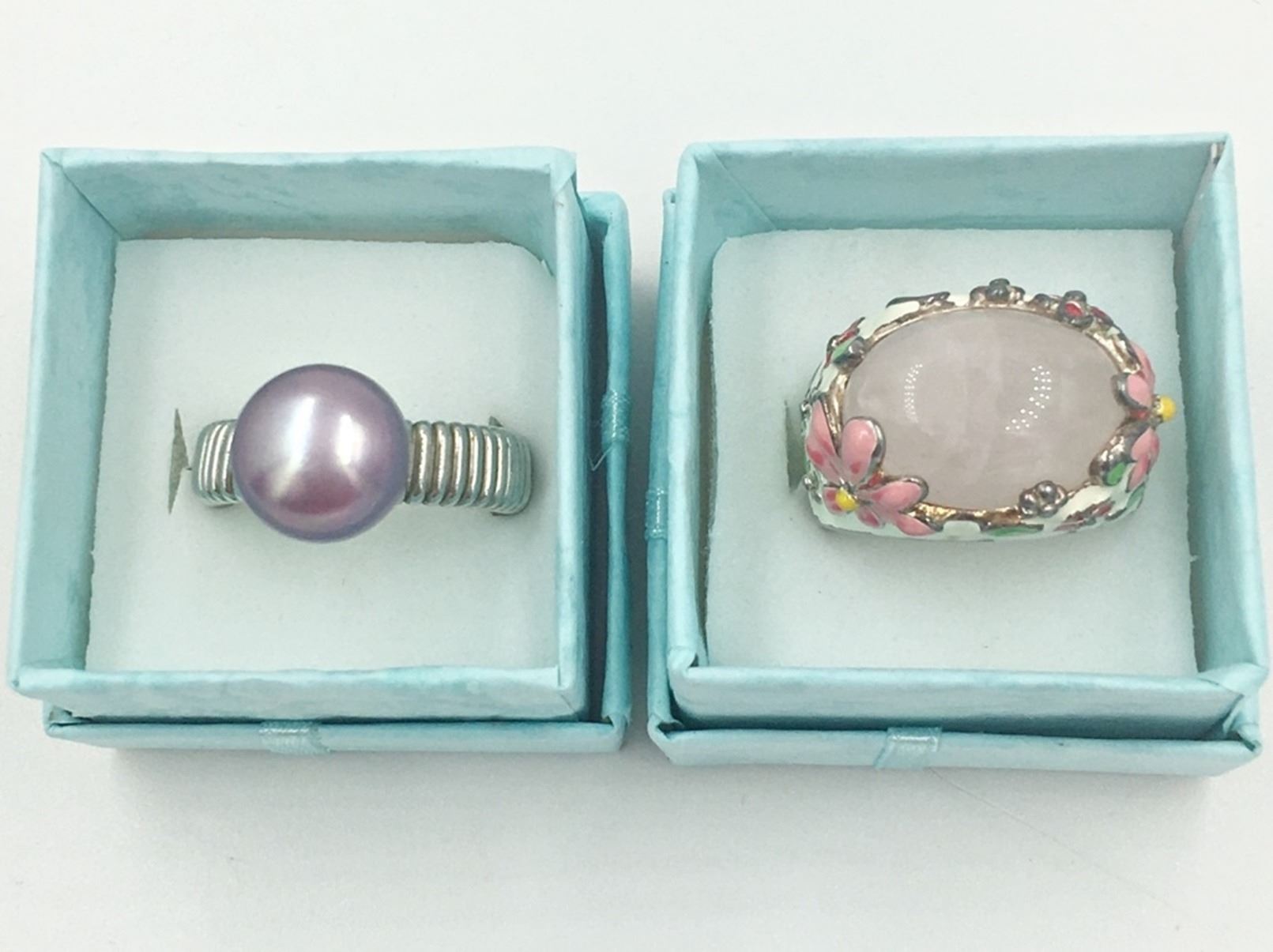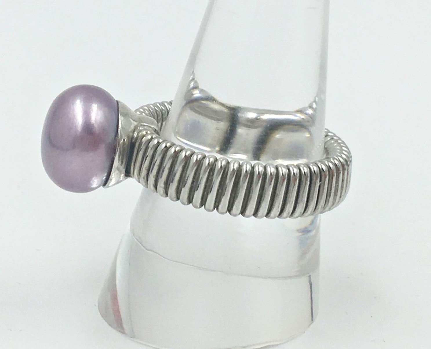 STERLING SILVER ROSE QUARTZ ENAMEL FLOWER RING--SIZE 9 1/2 SIGNED SIGAL .925 MESH DESIGN RING WITH LILAC COLORED STONE. PRE-OWNED. SEE PHOTOS. ESTIMATE:$ 75-100