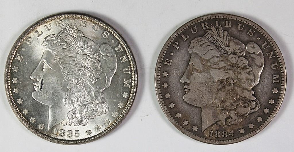 1885 CH BU+ AND 1884-S FINE. ESTIMATE: $75-$100