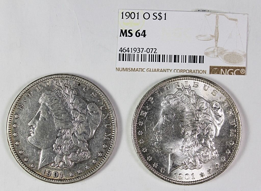 1901 XF-AU NICE AND 1901-O MS 64 (NGC CERT). ESTIMATE: $145-$200