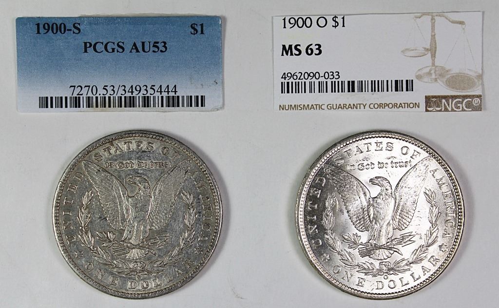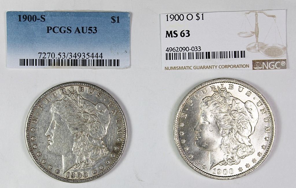 1900-S AU 53 (PCGS CERT) AND 1900-O MS 63 (NGC CERT). ESTIMATE: $120-$150