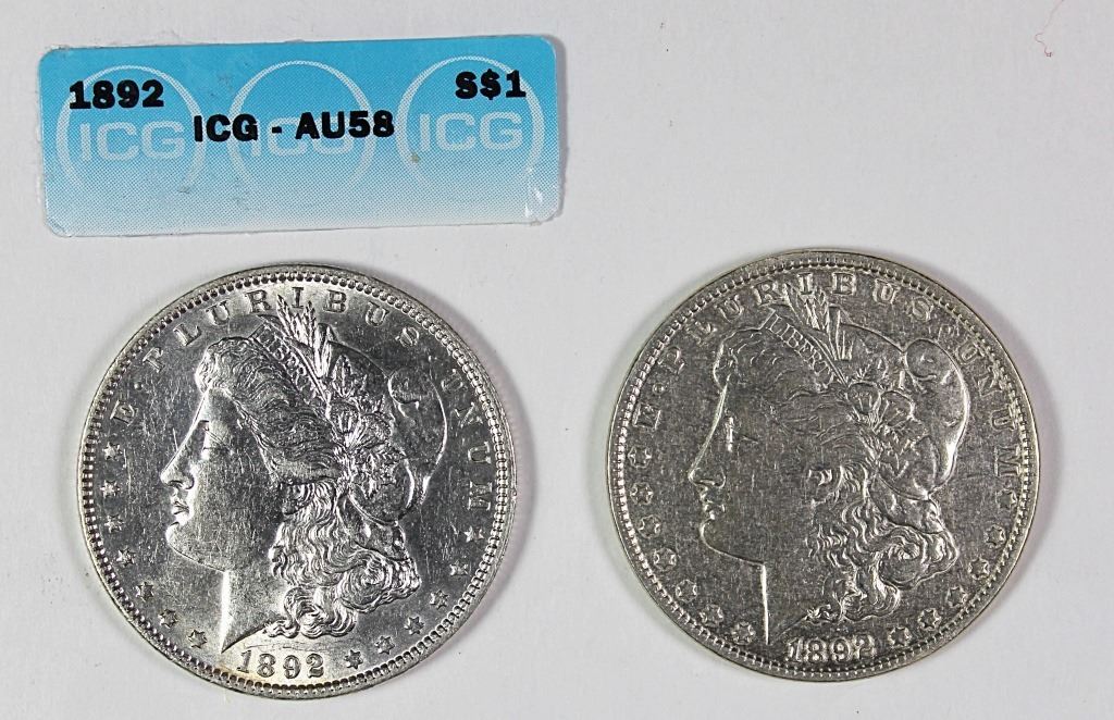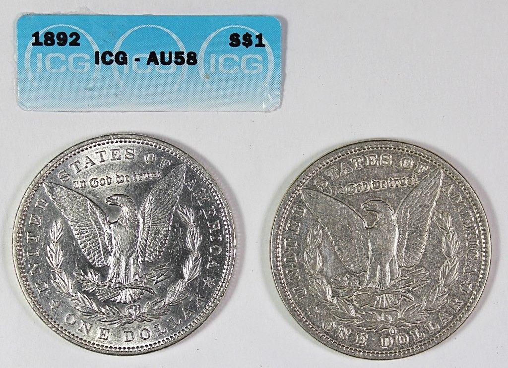 1892-O VF AND 1892 AU 58 (ICG CERT). ESTIMATE: $80-$125