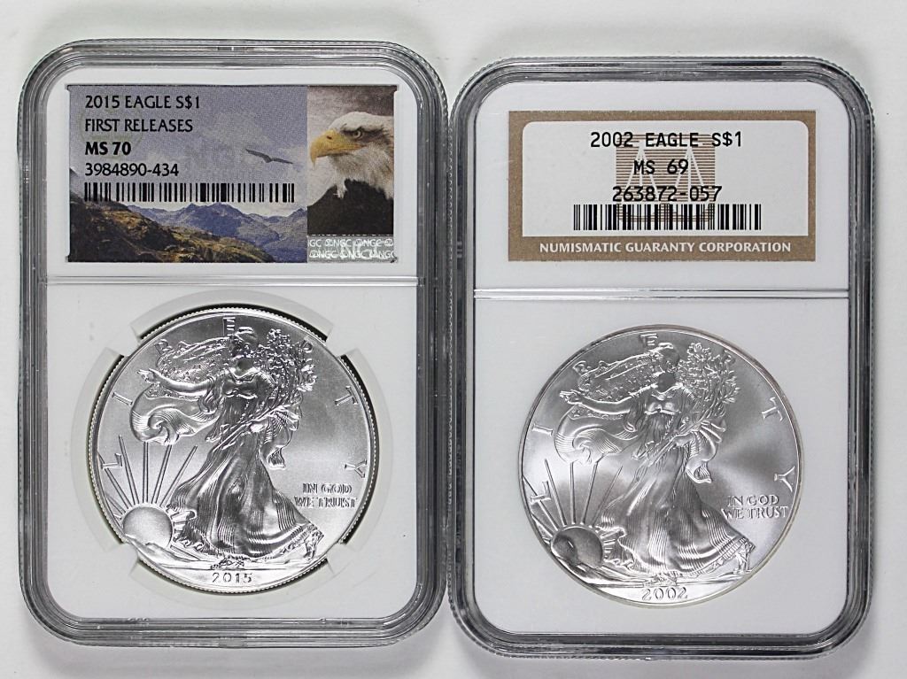 2002 MS 69 AND 2015 MS 70. ESTIMATE: $95-$125