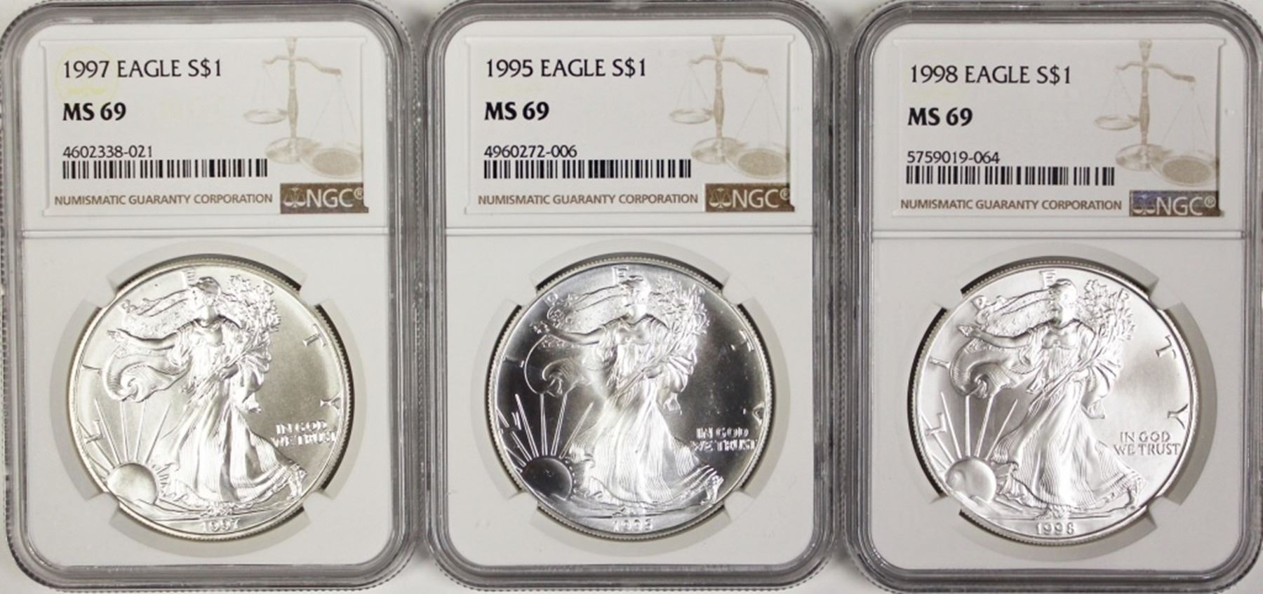 NGC GRADED MS 69 AMERICAN SILVER EAGLES