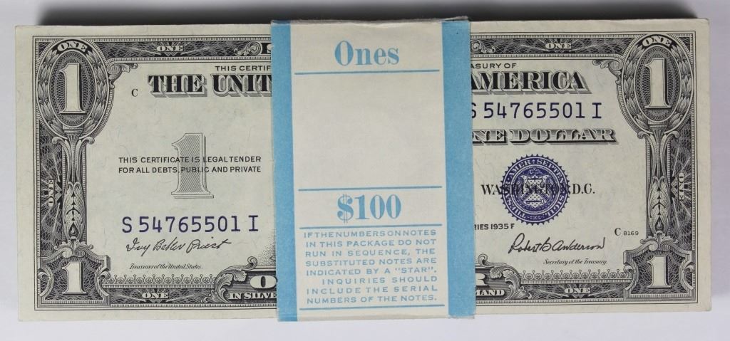 BANK-WRAPPED WITH THE ORIGINAL WRAPPER! YOU NEVER FIND THESE ANYMORE AND NEVER 1935 NOTES! OBVIOUSLY CONSECUTIVE SERIAL NUMBERS! ESTIMATE: $1750-$2000