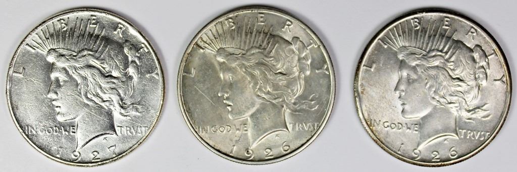 1926 AU/UNC, 1926-D AU/UNC, AND 1927-S AU. ESTIMATE: $150-$175