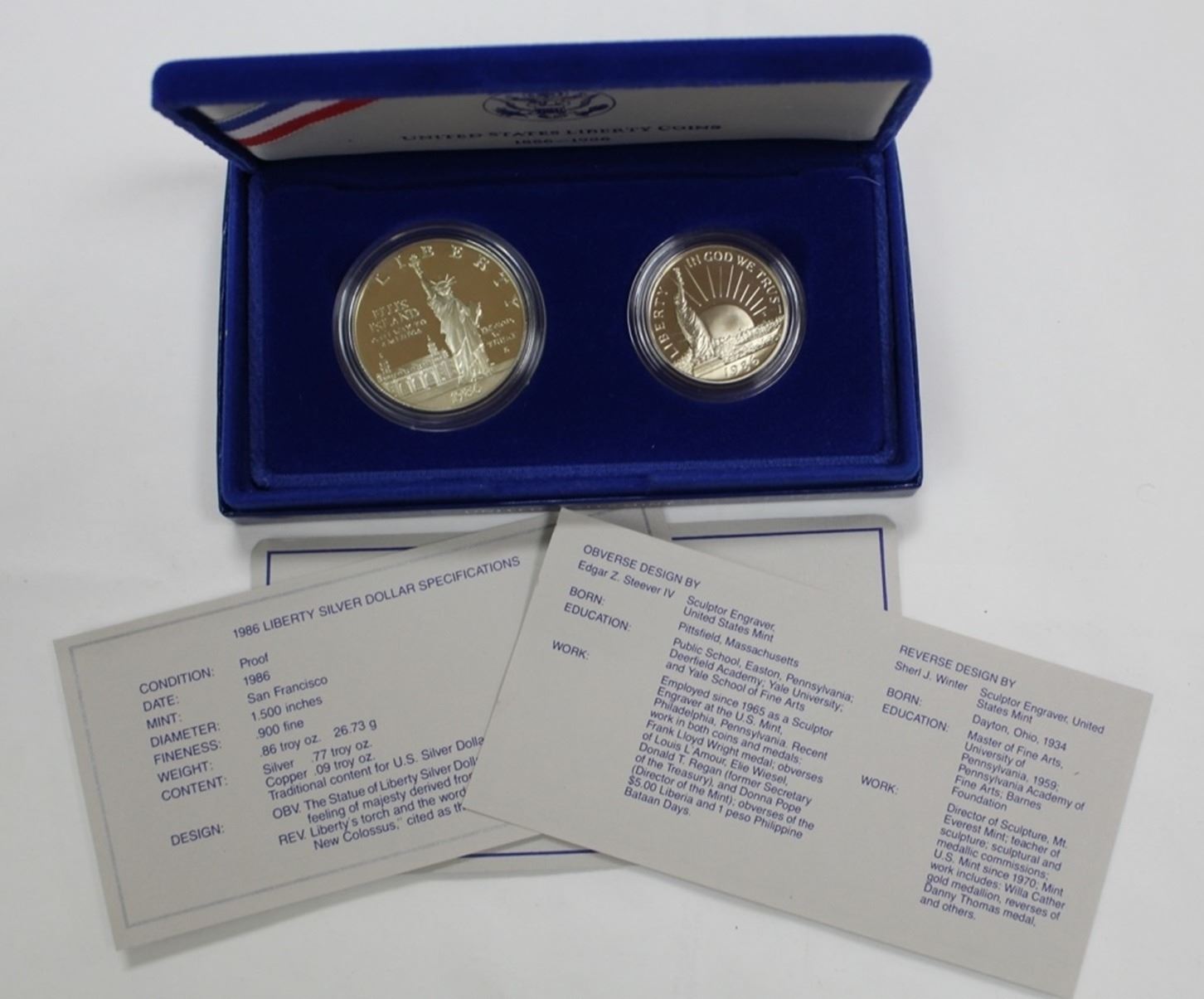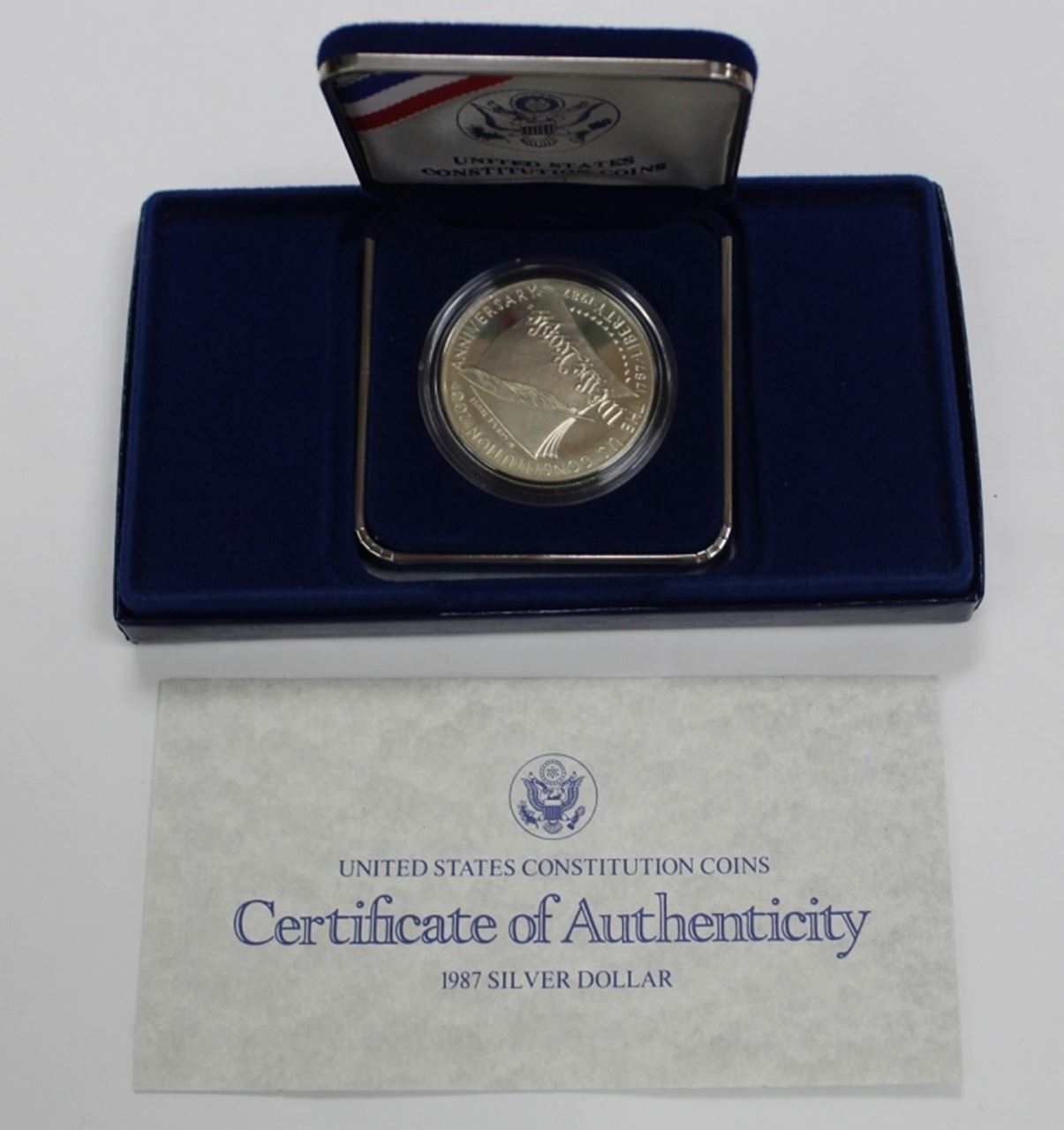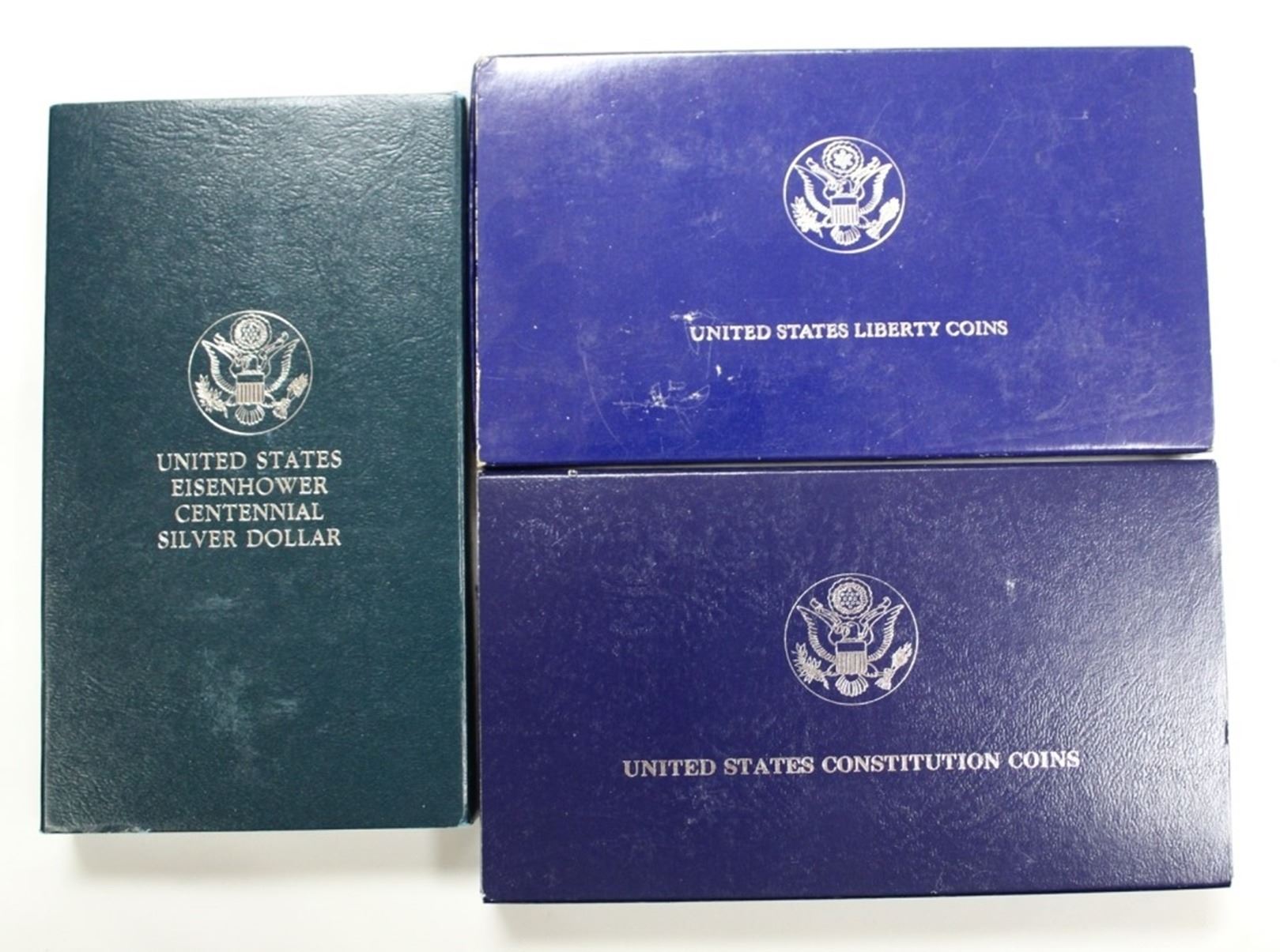 1990 EISENHOWER, 1986 STATUE OF LIBERTY TWO-PIECE SET, AND 1987 CONSTITUTION. ESTIMATE: $75-$100