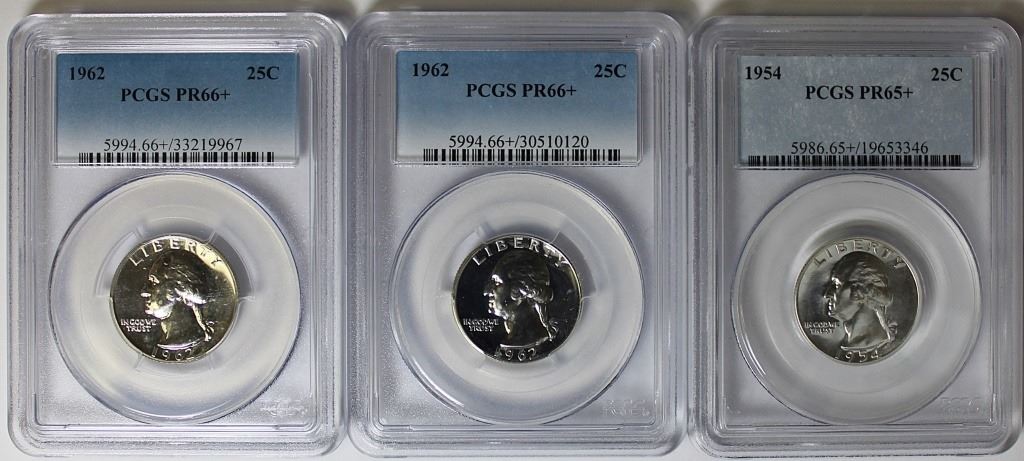 1954 PR65+AND TWO 1962 PR66+. 3 COINS TOTAL. ESTIMATE: $75-$100