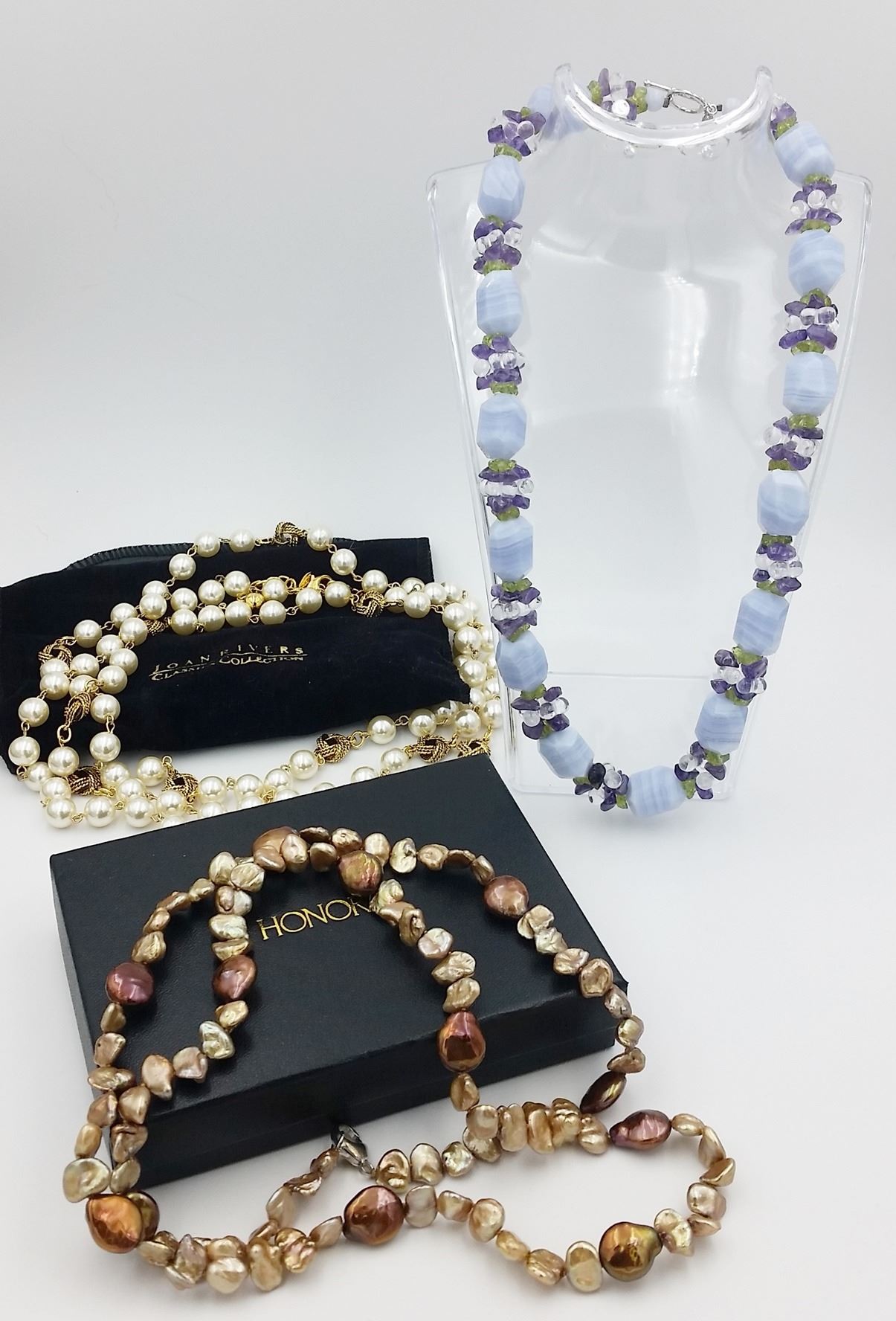 QVC BEADED AND PEARL LOT OF 3 - HONORA, JOAN RIVERS CLASSIC COLLECTION AND ROSS SIMONS. SEE PHOTOS. ESTIMATE:$150-$200