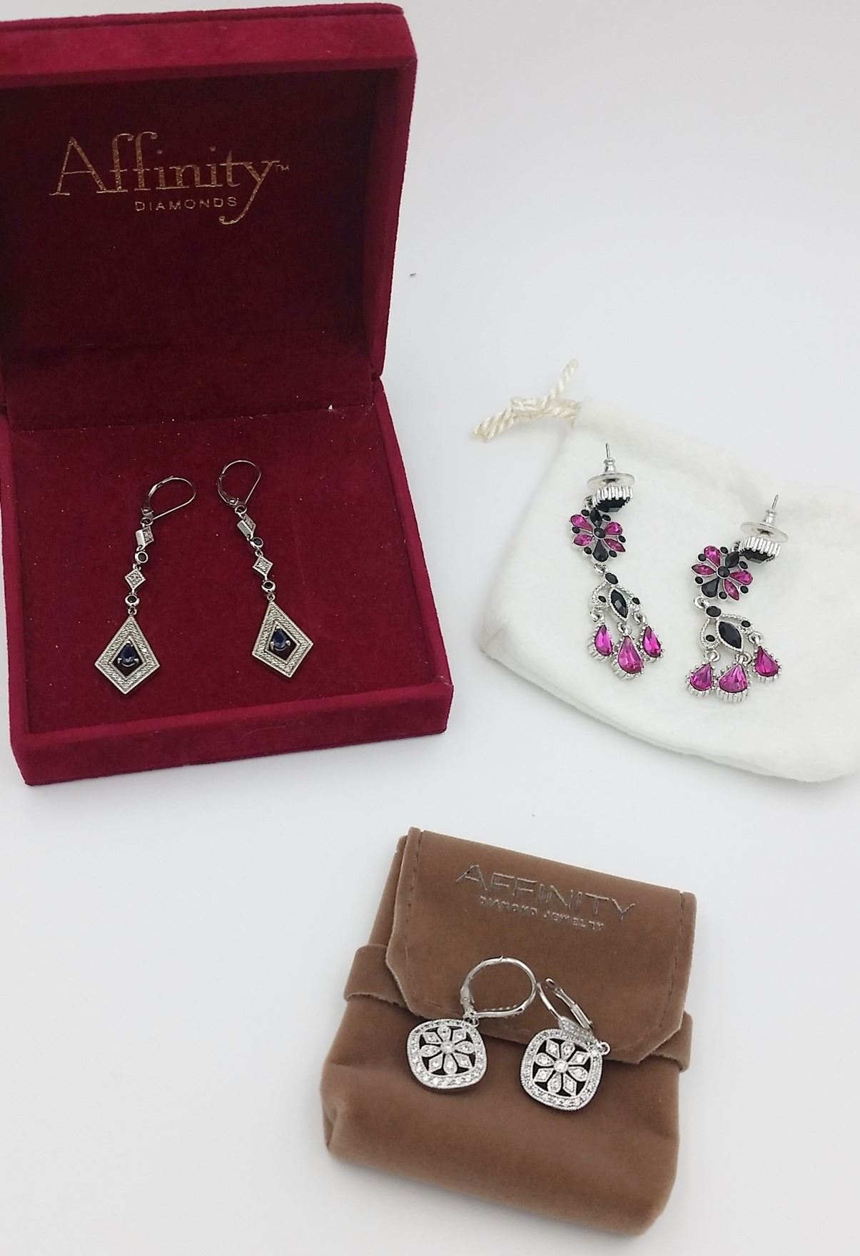 QVC EARRING LOT - 2 PAIRS OF AFFINITY AND STERLING SILVER EARRINGS, PAIR OF NOLAN MILLER. MULTI-COLOR DROP EARRINGS. SEE PHOTOS ESTIMATE:$100-$150