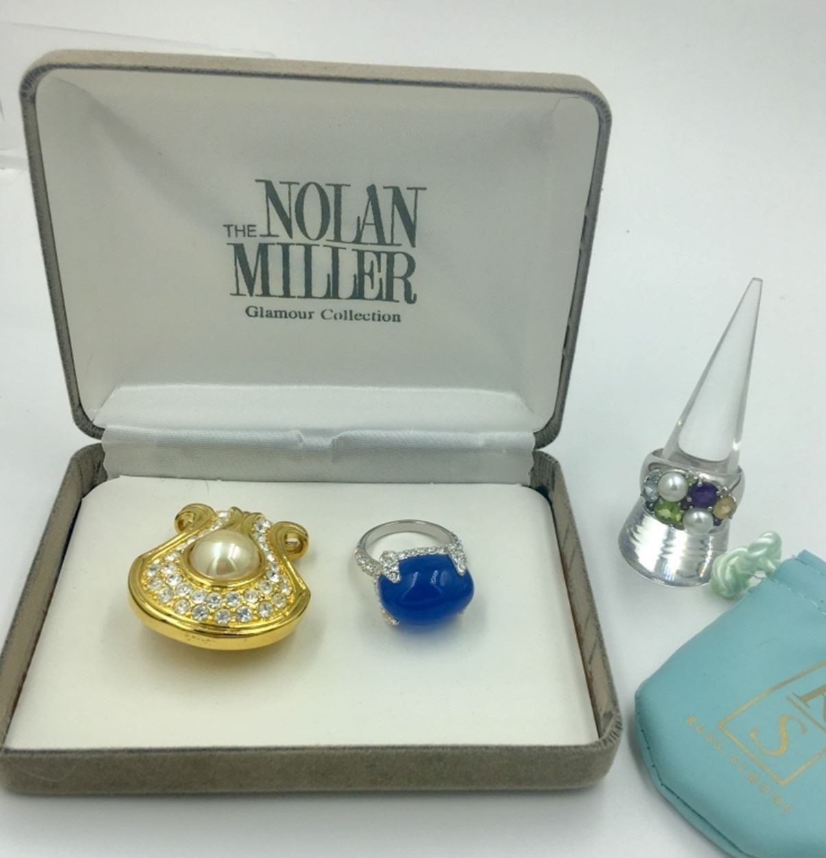 NOLAN MILLER RING, SIZE 9 1/2, NOLAN MILLER GOLD TONE PENDANT, ROSS SIMONS STERLING SILVER RING, SIZE 9 1/2, PRE OWNED, ESTIMATE $75-100