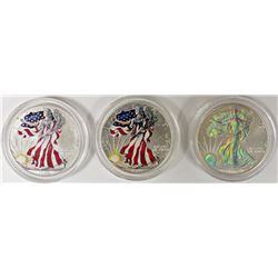 THREE COLORIZED AMERICAN SILVER EAGLES208 - THREE COLORIZED AMERICAN SILVER EAGLES