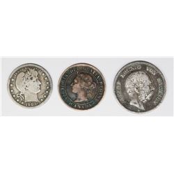 1876 ZWEI MARK ALBERT KOENIG VON SACHSEN NICE COIN! 1884 CANADA CENT AND 1903 QUARTER VG. ESTIMATE: $85-$125
