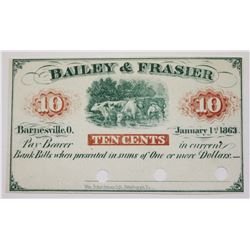 1863 BAILEY AND FRAZIER. BARNESVILLE, OHIO. CHOICE UNC. EARLY SCRIP IS HIGHLY UNDERRATED. ESTIMATE: $90-$150