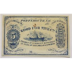 1860'S OBSOLETE FRACTIONAL FIVE CENT SCRIP227 - 1860'S OBSOLETE FRACTIONAL FIVE CENT SCRIP