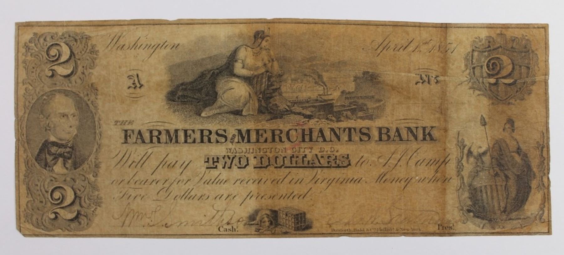 RARE WASHINGTON D.C. FARMERS AND MERCHANTS $2