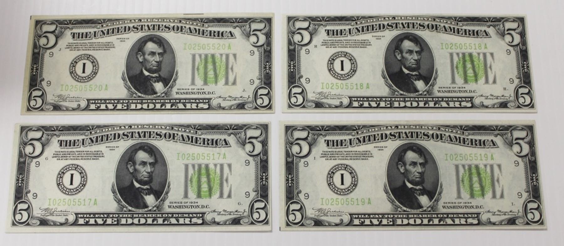 LIGHT GREEN. SUPERB UNCS. CONSECUTIVE SERIAL NUMBERS, MINNEAPOLIS, ESTIMATE: $875-$1,000