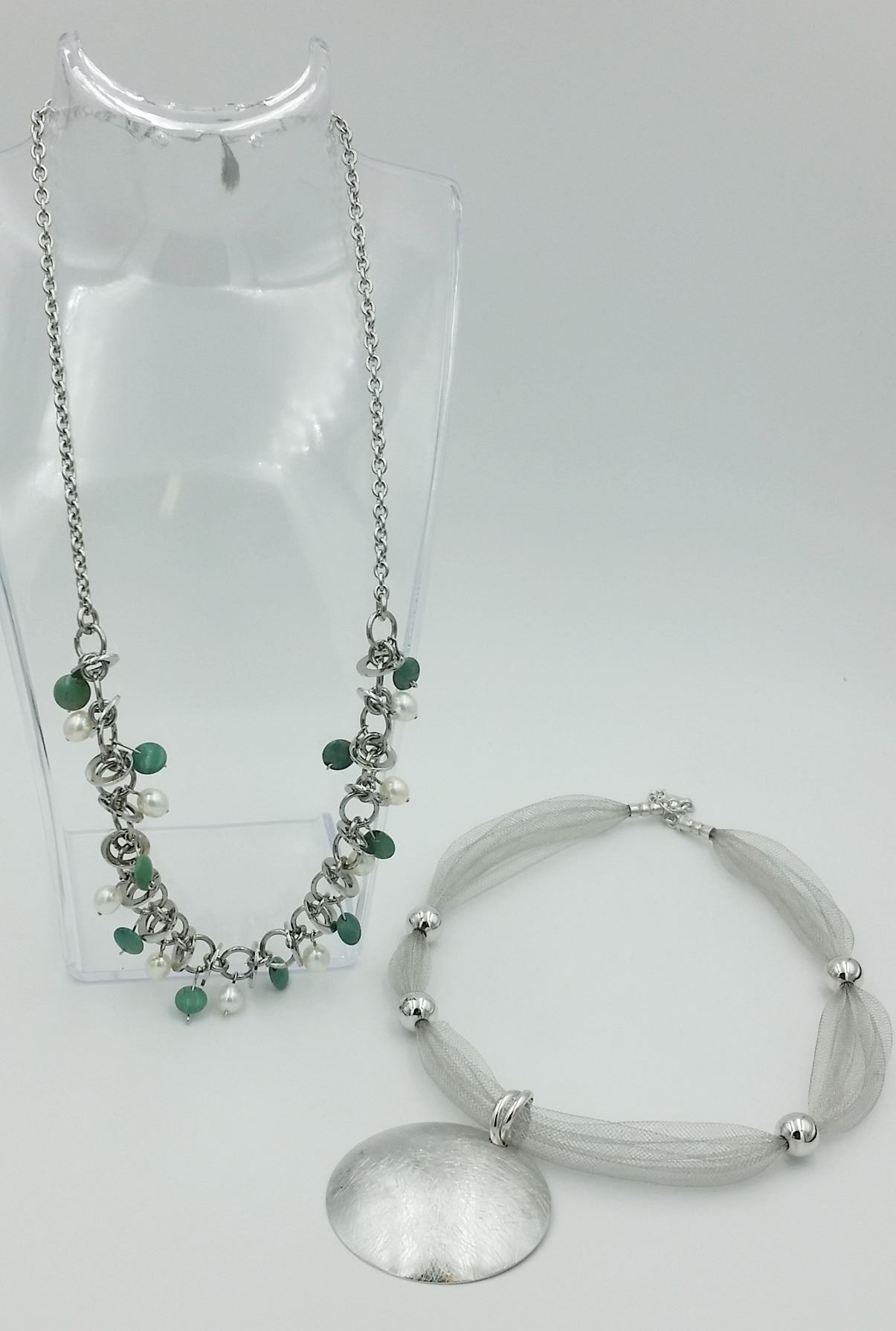 SIMONA COLLINI STAINLESS STEEL NECKLACE AND MILOR ITALY STERLING SILVER NECKLACE