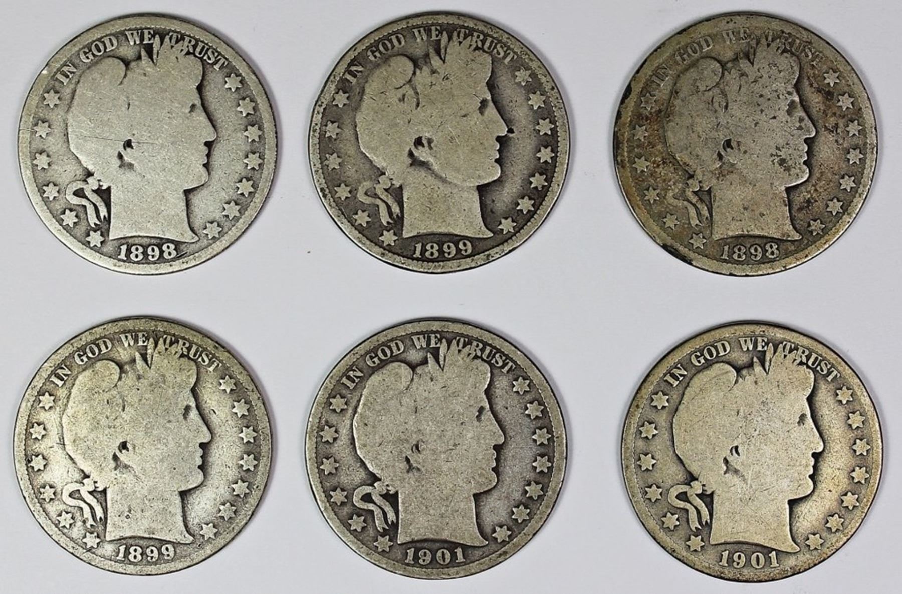 1901 GOOD, 1901-S AG/G, 1899-O GOOD, 1899 GOOD, 1898-S GOOD AND 1898-O AG/G. ESTIMATE: $135-$175