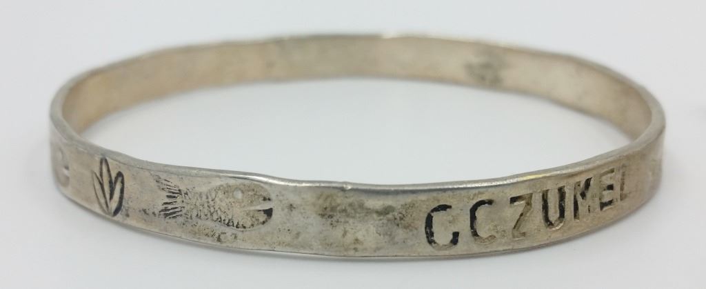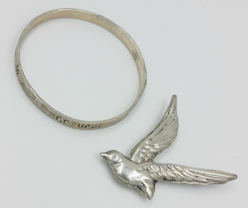 PIN AND BANGLE BRACELET, PRE-OWNED, 32 GRAMS TOTAL. ESTIMATE: $50-$75