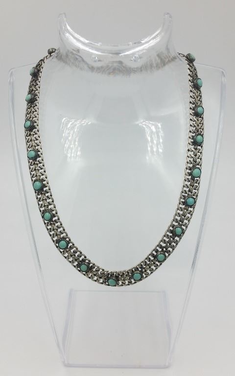 NECKLACE 15", PRE-OWNED, TURQUOIS COLORED STONES, SEE PICTURE, TOTAL OF 32 GRAMS. ESTIMATE: $50-$75
