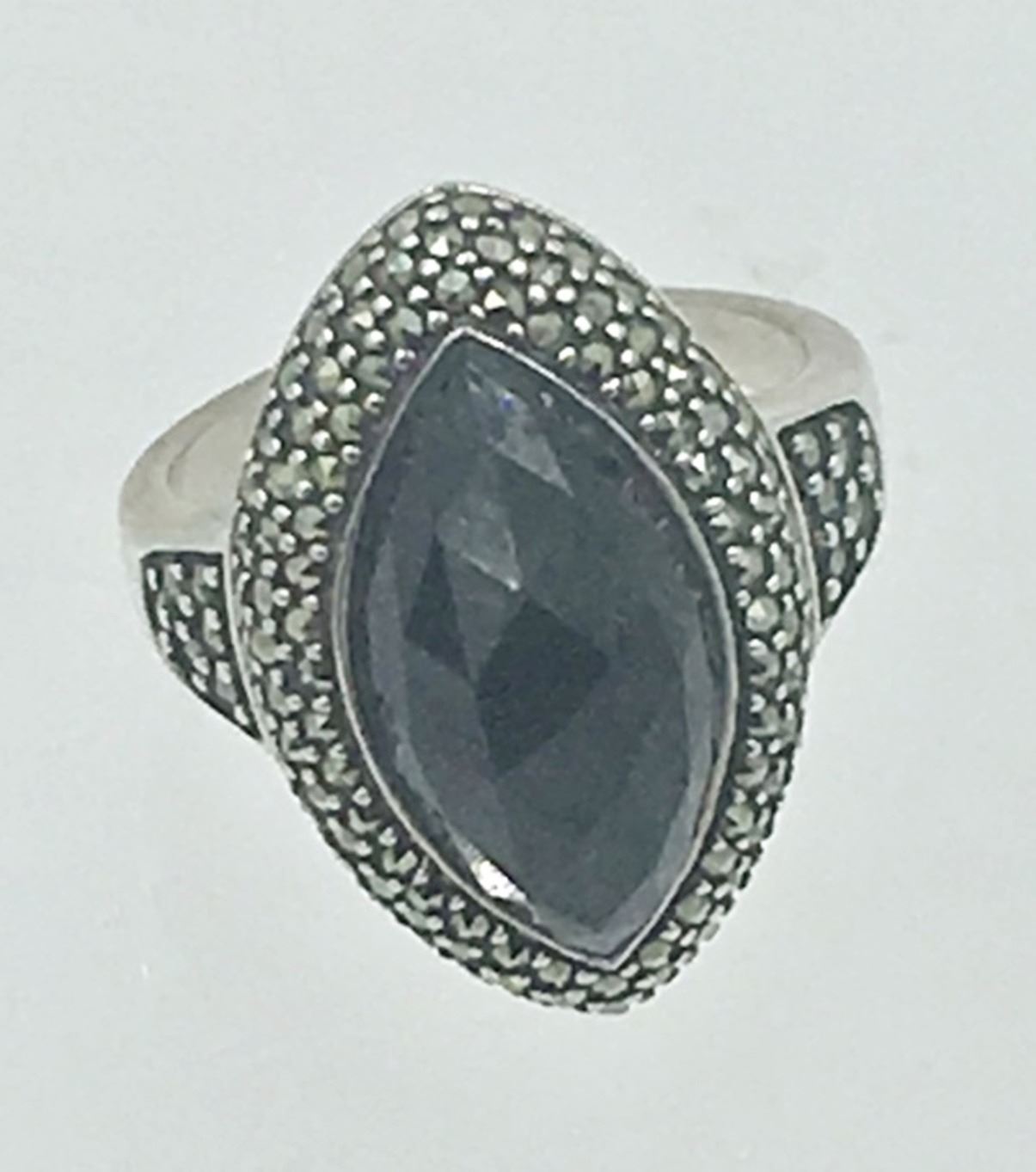 .925 THAILNAD STAMPED. SIZE 9 1/2. SURRONDED IN SPARKLES. PRE-OWNED. SEE PHOTOS. ESTIMATE: $75-$100