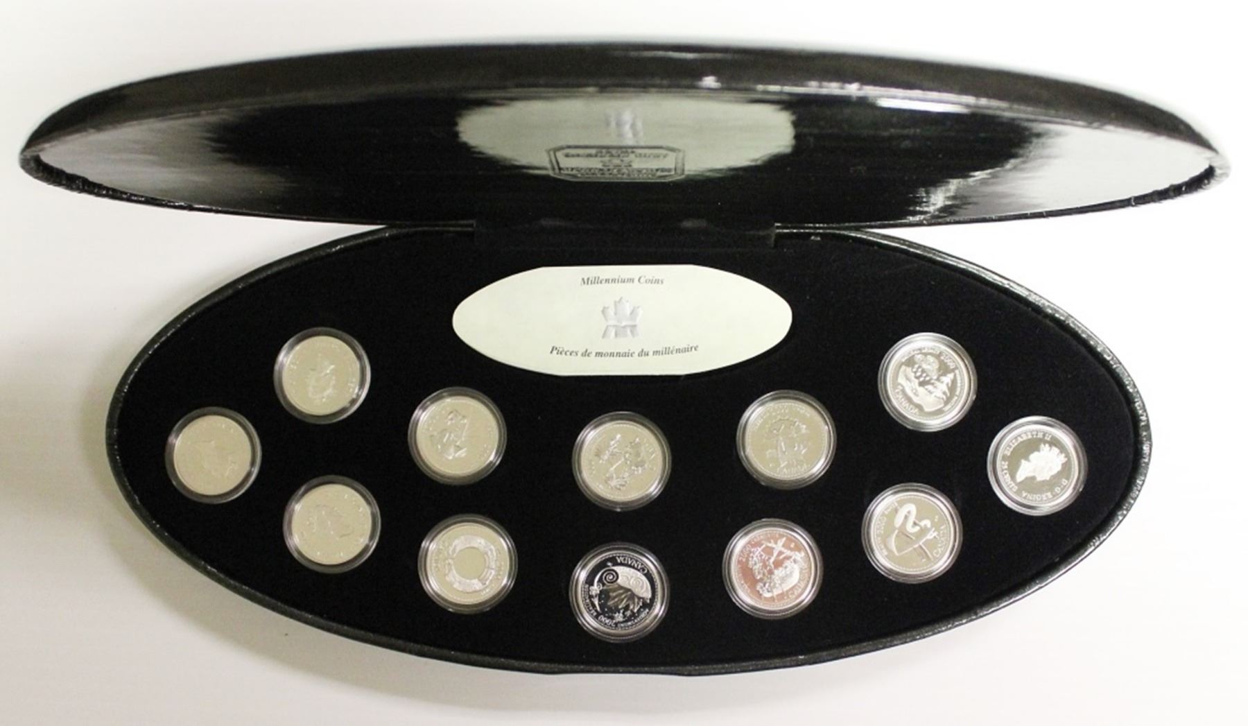 SET TWENTY FIVE CENTS. 12 COINS TOTAL. BOX AND FANCY CASE. ESTIMATE: $150-$200