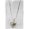 STERLING SILVER HEART LOCKET ON AN 18" CHAIN. BEAUTIFUL DETAILED ETCHING ON THE LOCKET. STAMPED "THAILAND". 13.1 GRAMS TOTAL. PRE-OWNED. ESTIMATE: $50-$75