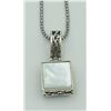 STERLING SILVER NECKLACE WITH REVERSIBLE PENDANT. CHAIN IS 18" LONG. ONE SIDE OF PENDANT IS ONYX, THE OTHER SIDE IS MOTHER OF PEARL. PRE-OWNED. 4.4 GRAMS TOTAL. ESTIMATE: $100-$125