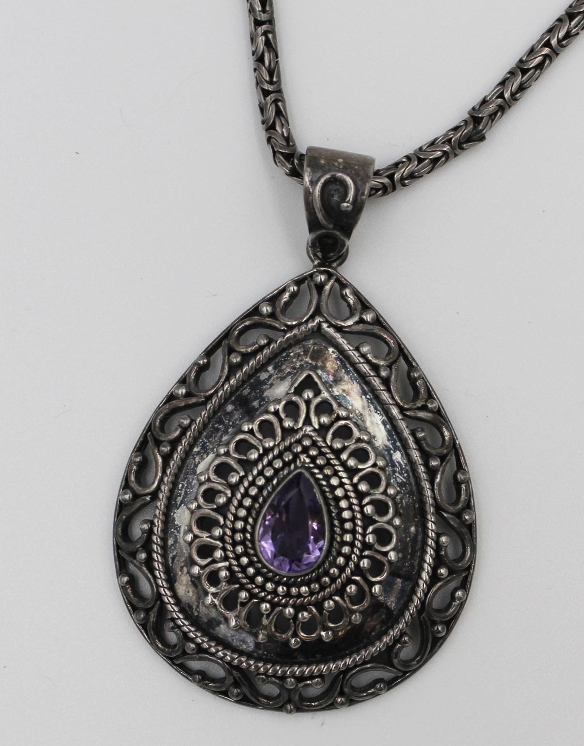 STERLING SILVER PENDANT AND CHAIN. MADE IN INDIA. PRE-OWNED. 65.9 GRAMS. ESTIMATE:$75-$100
