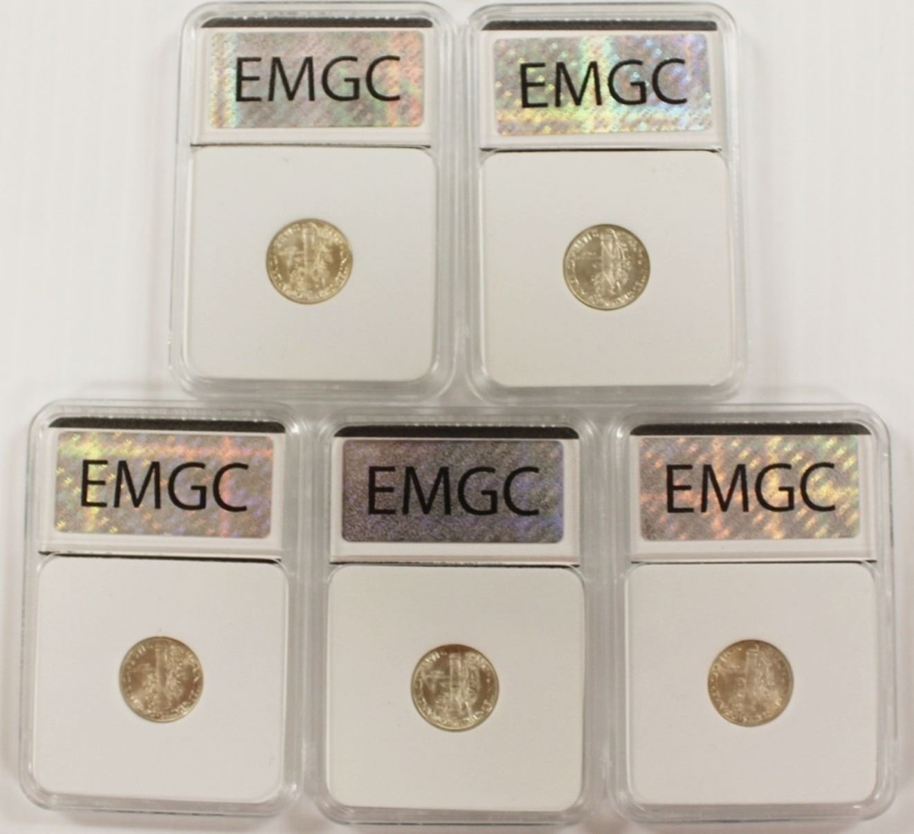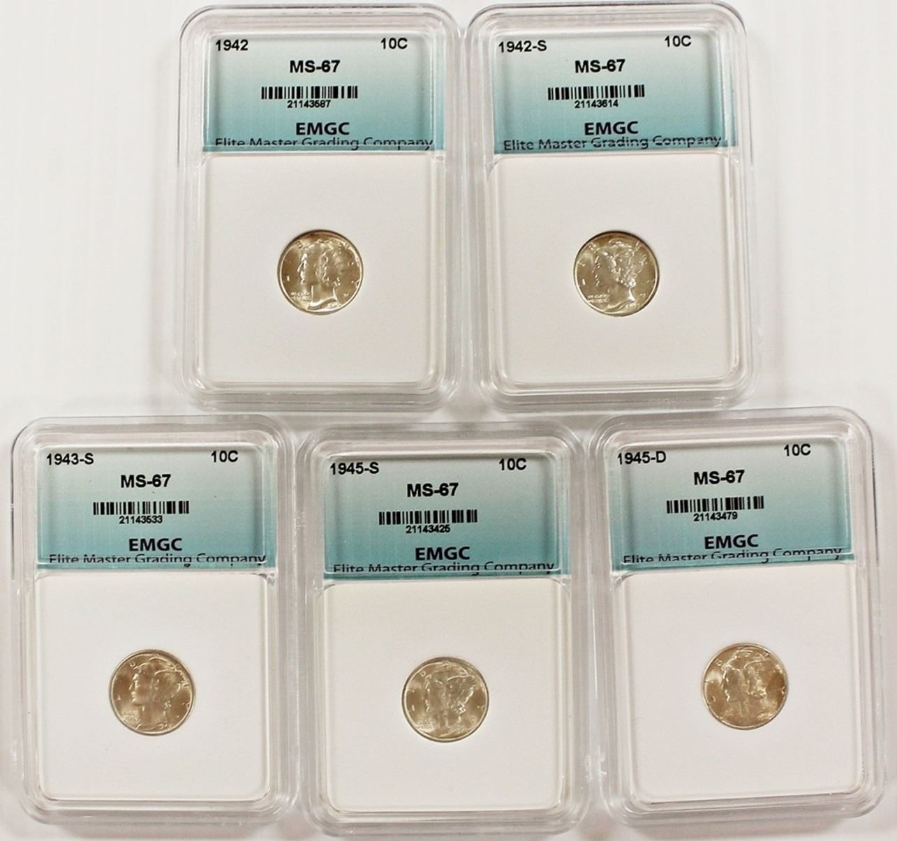 EMGC GRADED. 1943-S, 1945-D, 1945-S, 1942 AND 1942-S. FIVE COINS TOTAL. ESTIMATE: $300-$400